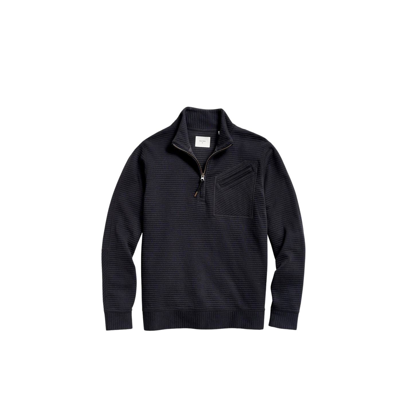 This lightweight half-zip is the perfect transitional layer, made from a comfortable cotton blend and finished with smart details like a subtle quilted stripe, an asymmetrical chest pocket, handsome elbow patches, and our signature ribbon stripe at the zipper and cord puller.