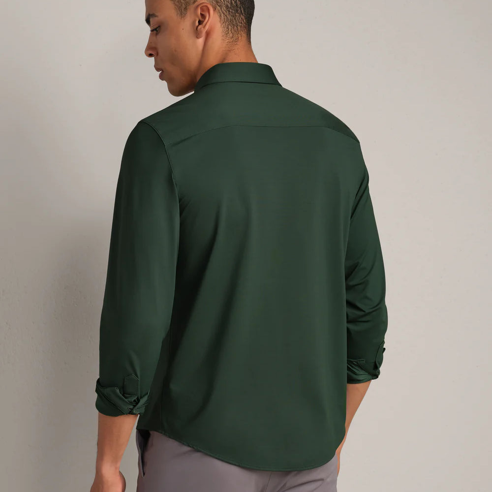 This revolutionary dress shirt was designed to overhaul the notions of your starchy, stiff workwear. Made with similar properties as our activewear, the Commuter® Shirt features a lightweight fine Italian fabric, GOLDFUSION® Anti-Odor Technology, wrinkle release technology, and is 100% machine washable. For the office, or a night out, never choose between style and comfort again.