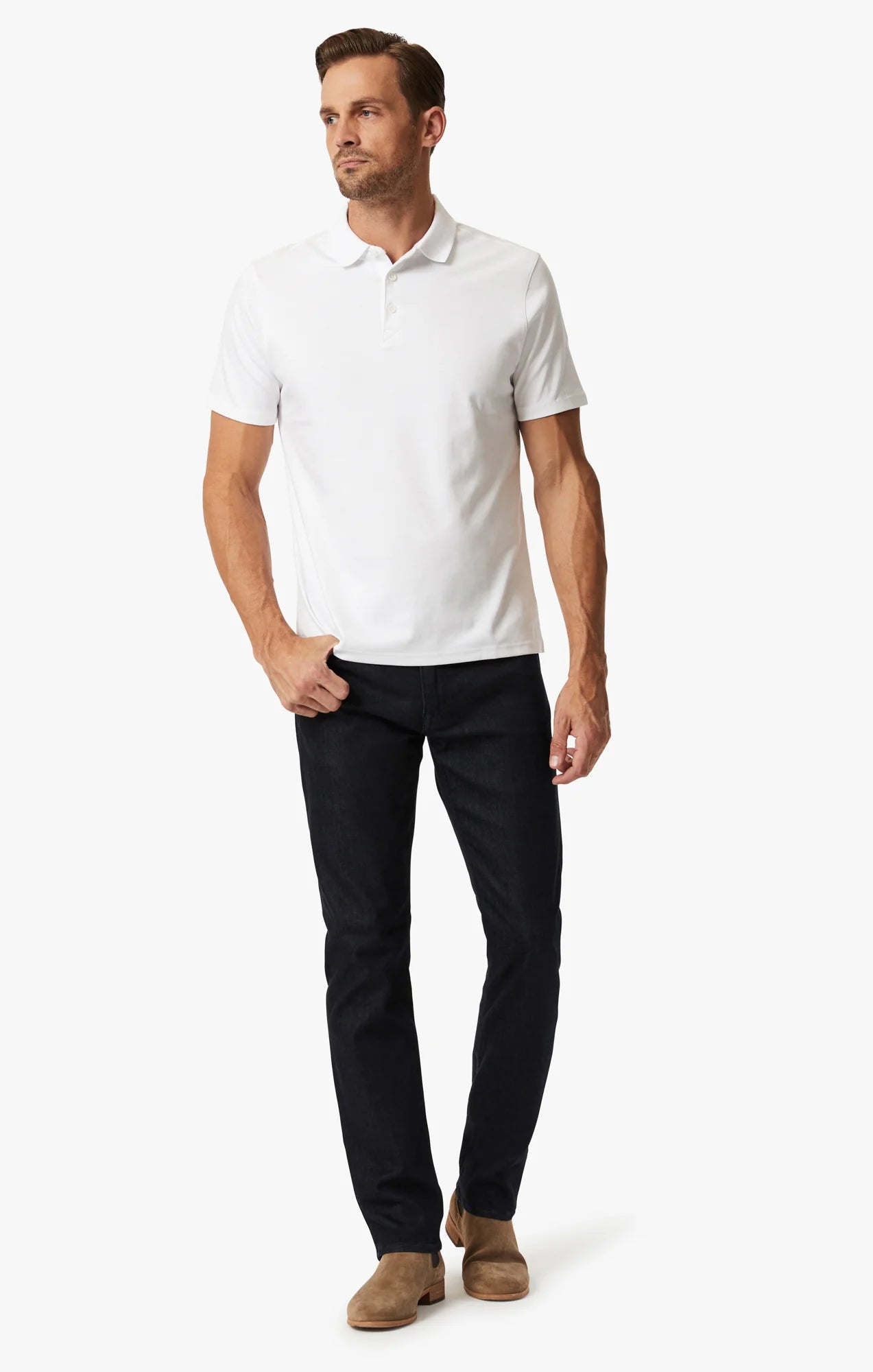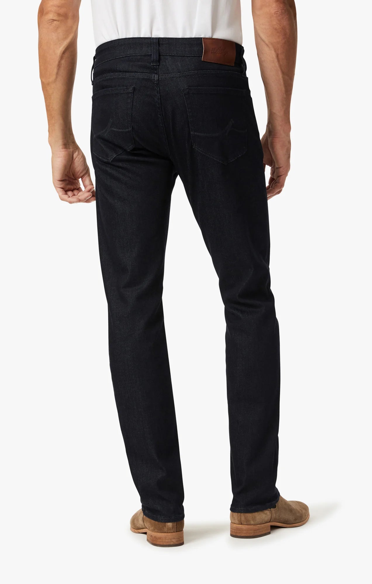 This sleek pair has subtle sophistication, with tonal stitching and a deep, textured wash. Smooth Tencel™ and elastane give this premium denim flexibility and comfort to move with you all day and night.
