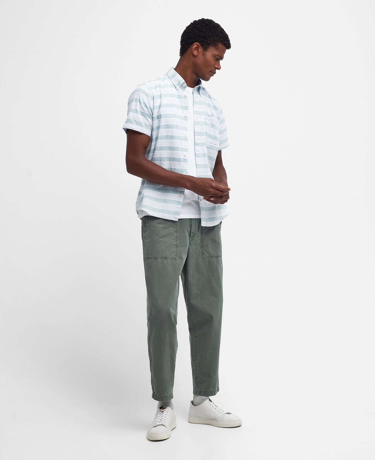 Inspired by our coastal heritage, the Barbour Somerby Short-Sleeved Shirt features a nautical striped print which gives this classic design a modern twist. Crafted from a lightweight cotton and linen blend, this tailored silhouette is perfect for pairing with shorts and trainers on warmer days.